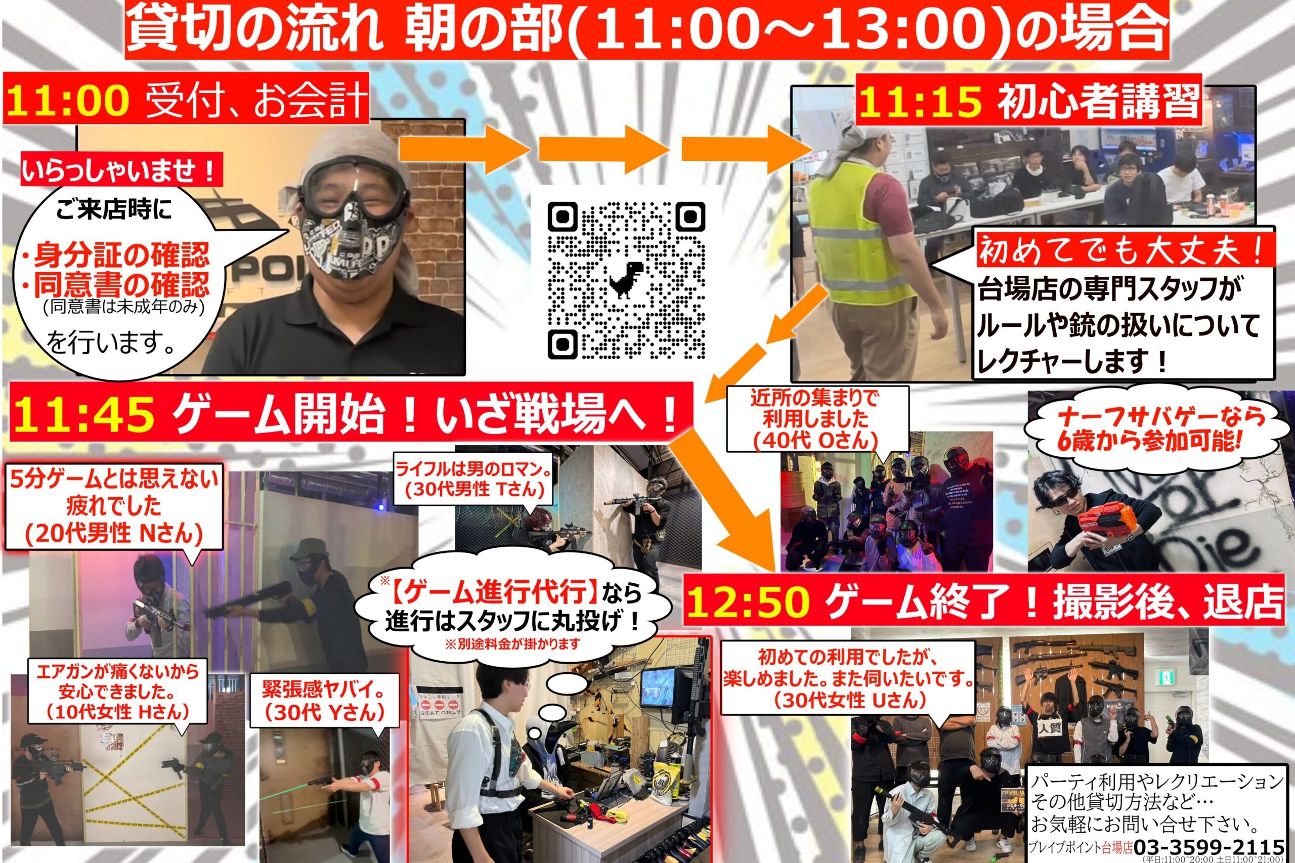 ゲーム進行代行を付けなくても「レギュレーション説明」と「エアガンの取り扱い方」は無料で行いますのでご安心ください。サバイバルゲームの知識がある方がいる場合はゲーム進行代行料は不要となります。