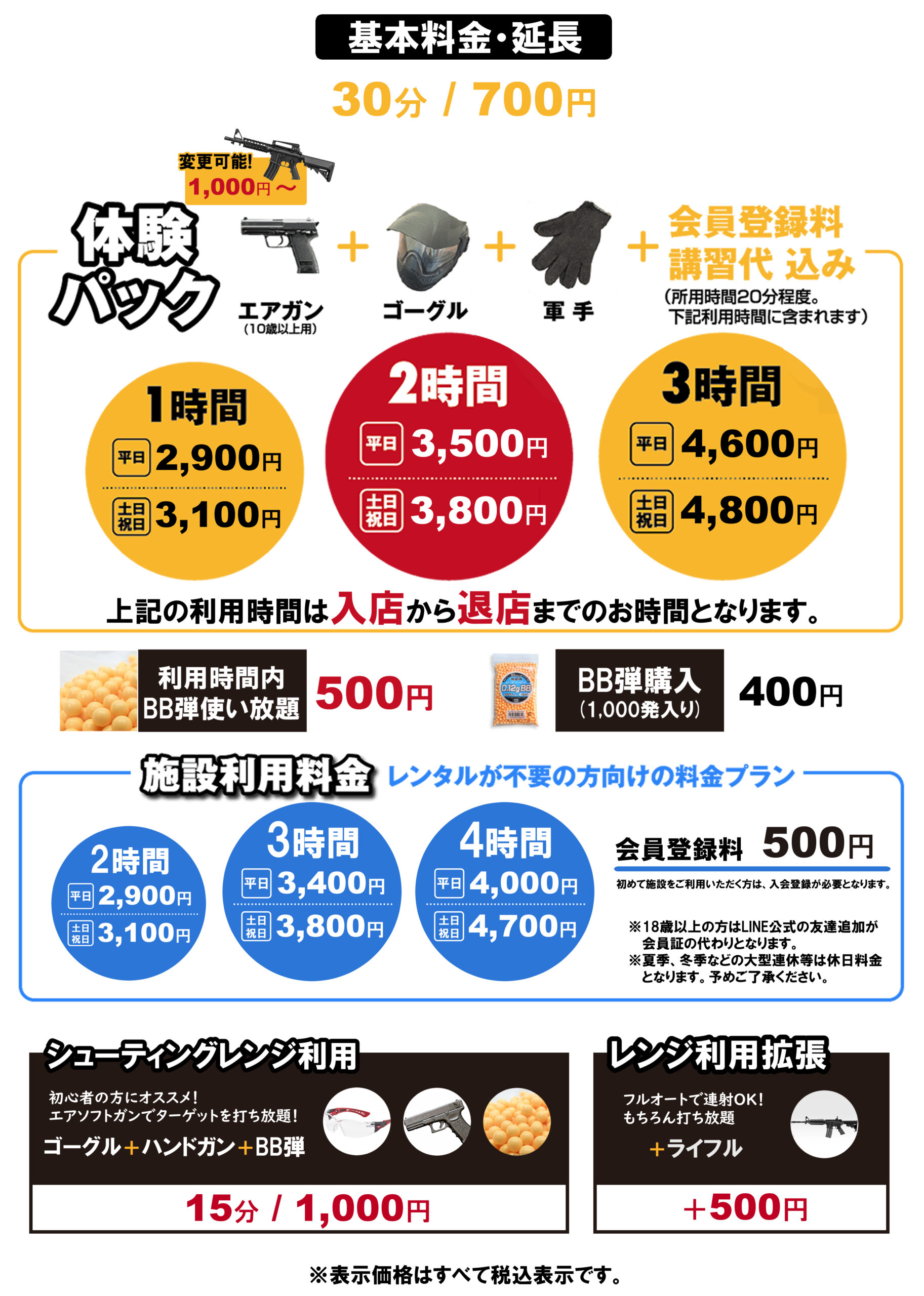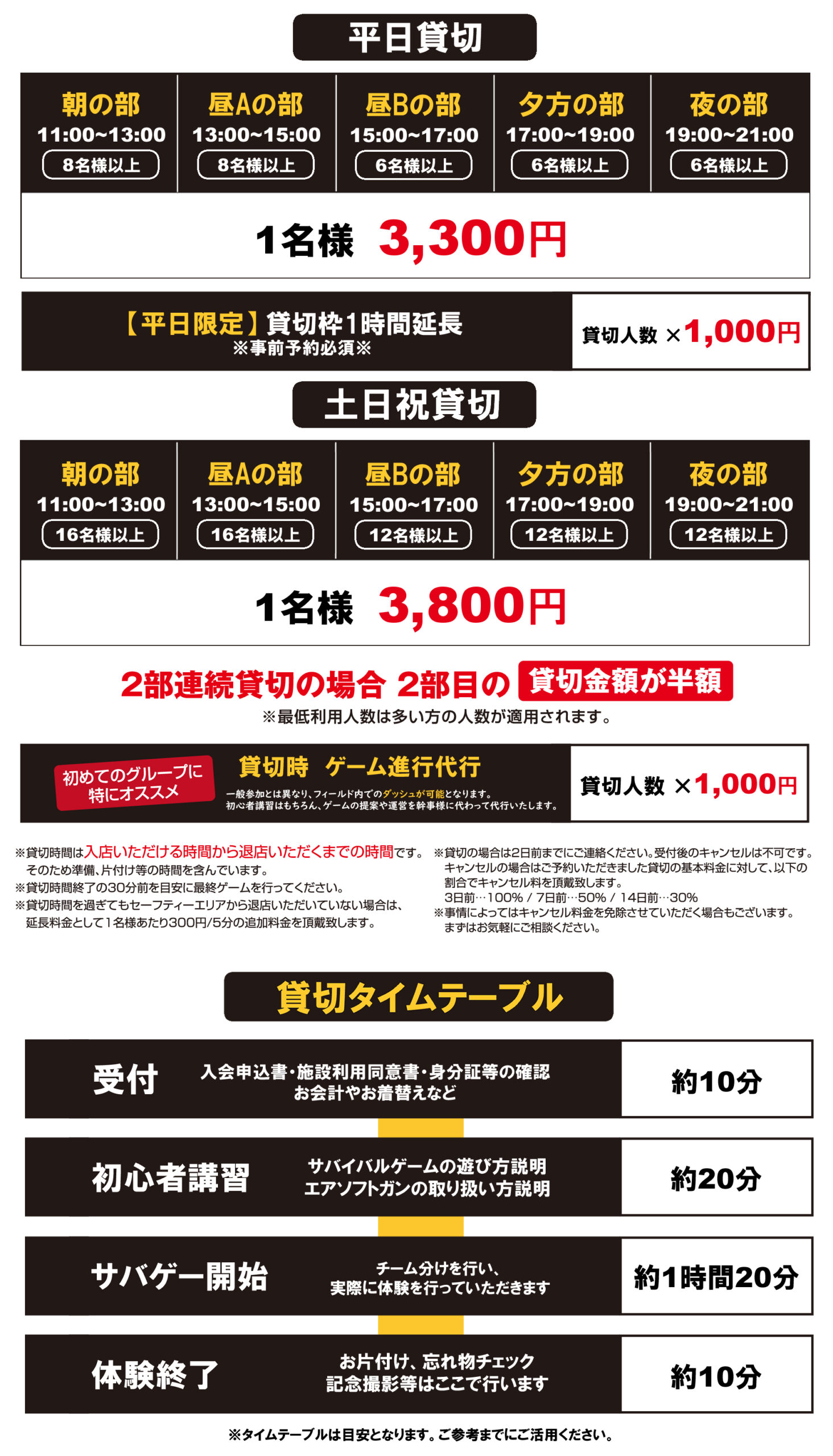 ※春休み、ゴールデンウィーク、夏休み、シルバーウィーク、冬休みなど当社の指定する期間中の平日は土日祝日料金となります。詳しくはNEWSやカレンダーページをご確認ください。
