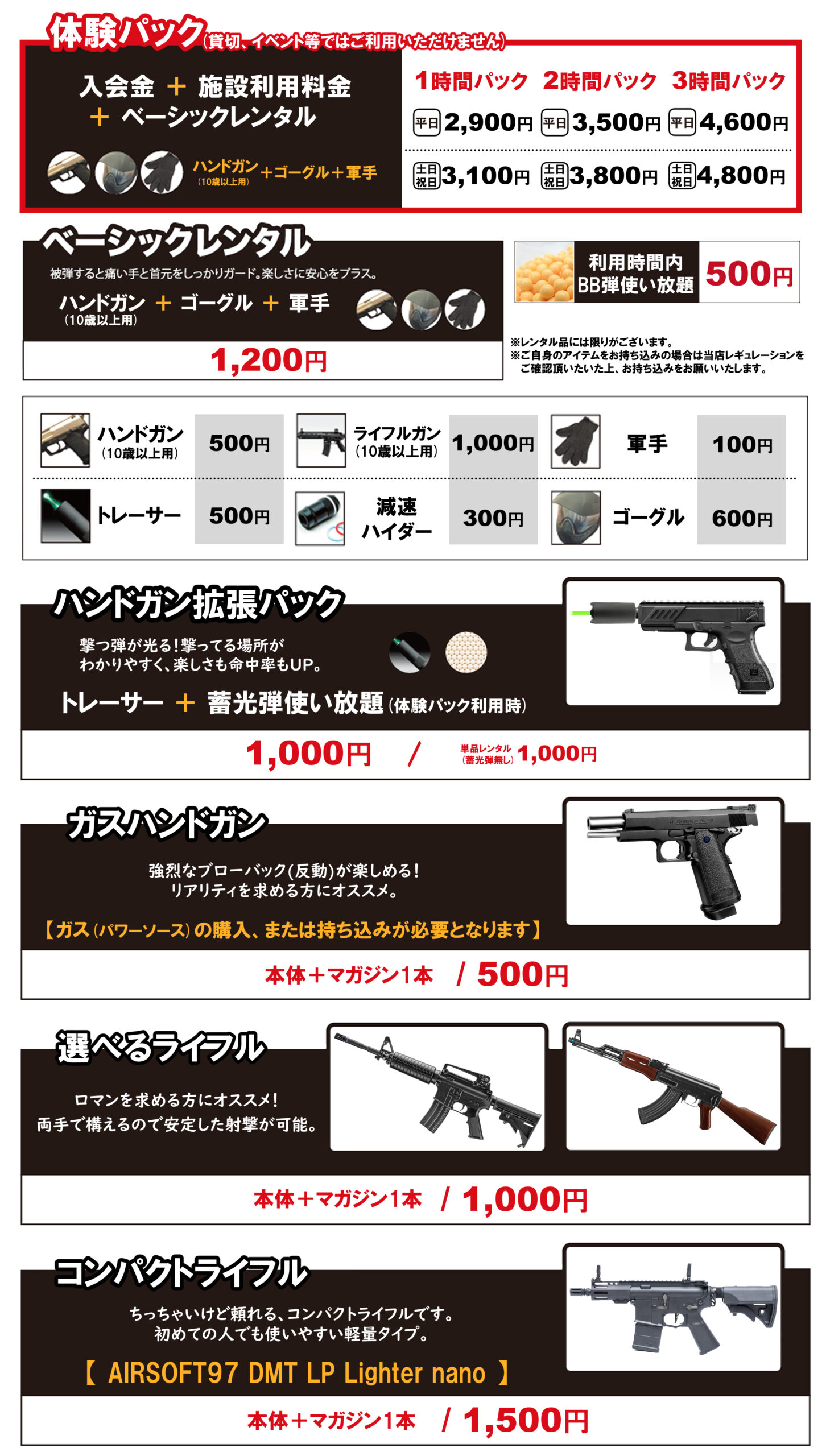 ※「体験パック」では、他に居合わせたお客様やスタッフと一緒にプレーいただきます。またご利用時間についてはスタジオ利用に伴う「ルール説明時間」もご利用時間内に含まれます。予めご了承ください。